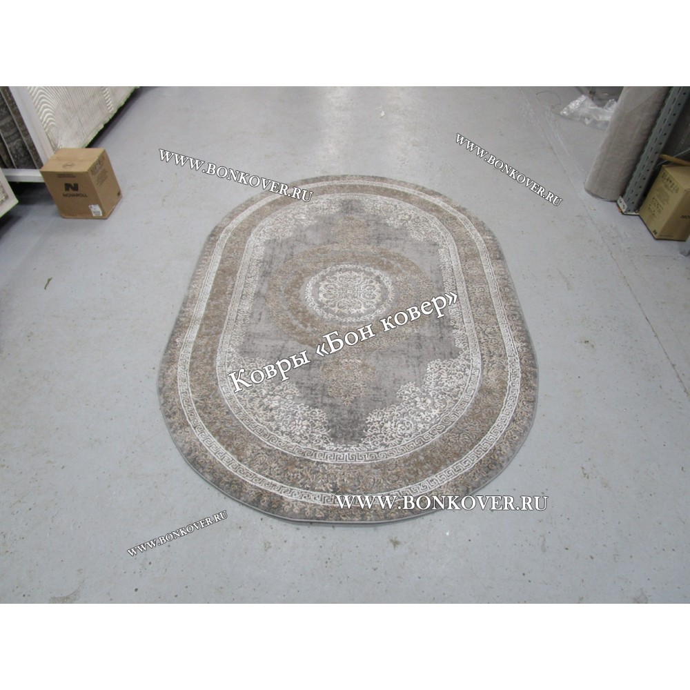 Шикарный Классический ковер дизайн 93 Коричневый с серым овал наполняет интерьер квартиры теплом и уютом, гармонично сочетает в себе изящество и стиль. Он соткан из экологически чистого сырья, комфортный и долговечный.