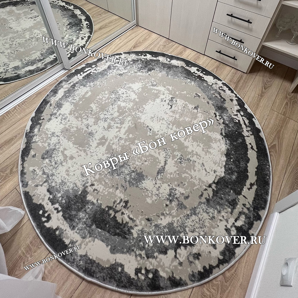 Элегантный Ковер в гостиную дизайн 08 Серый Круг наполняет интерьер жилого пространства теплом и уютом, гармонично сочетает в себе изящество и стиль. Он создан из износостойких материалов, прочный и долговечный.